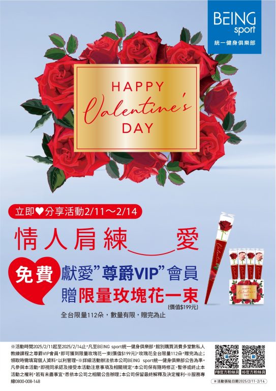 (已結束)Happy Valentine’s❤️情人肩練愛💪尊爵VIP會員限量玫瑰花一束‼️|會員優惠|